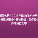 你有没有过这种情况?辛辛苦苦维护的网站加载速度一直很慢,导致用户一个个都流失了。或者你明明设计了流畅的界面,结果还是感觉不够好用,用户体验差得一塌糊涂?这些问题已经让很多WordPress用户困扰了很久,甚至影响了站点的流量和转化率。 WordPress最近推出了一款限时插件,专门为解决这些难题而生,今天我就帮你详细解读一下。