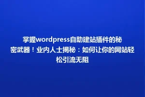 别再等了,现在就来看看这款插件的独特之处吧!通过我们的详细介绍和实用技巧,你会发现优化网站其实并不困难。让我们一起迈出提升网站速度的重要一步,给你的访客一个更流畅的浏览体验!