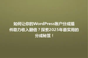 本文标题:使用WordPress加速优化插件真的能让网站飞起来吗?探索令人惊艳的提升效果