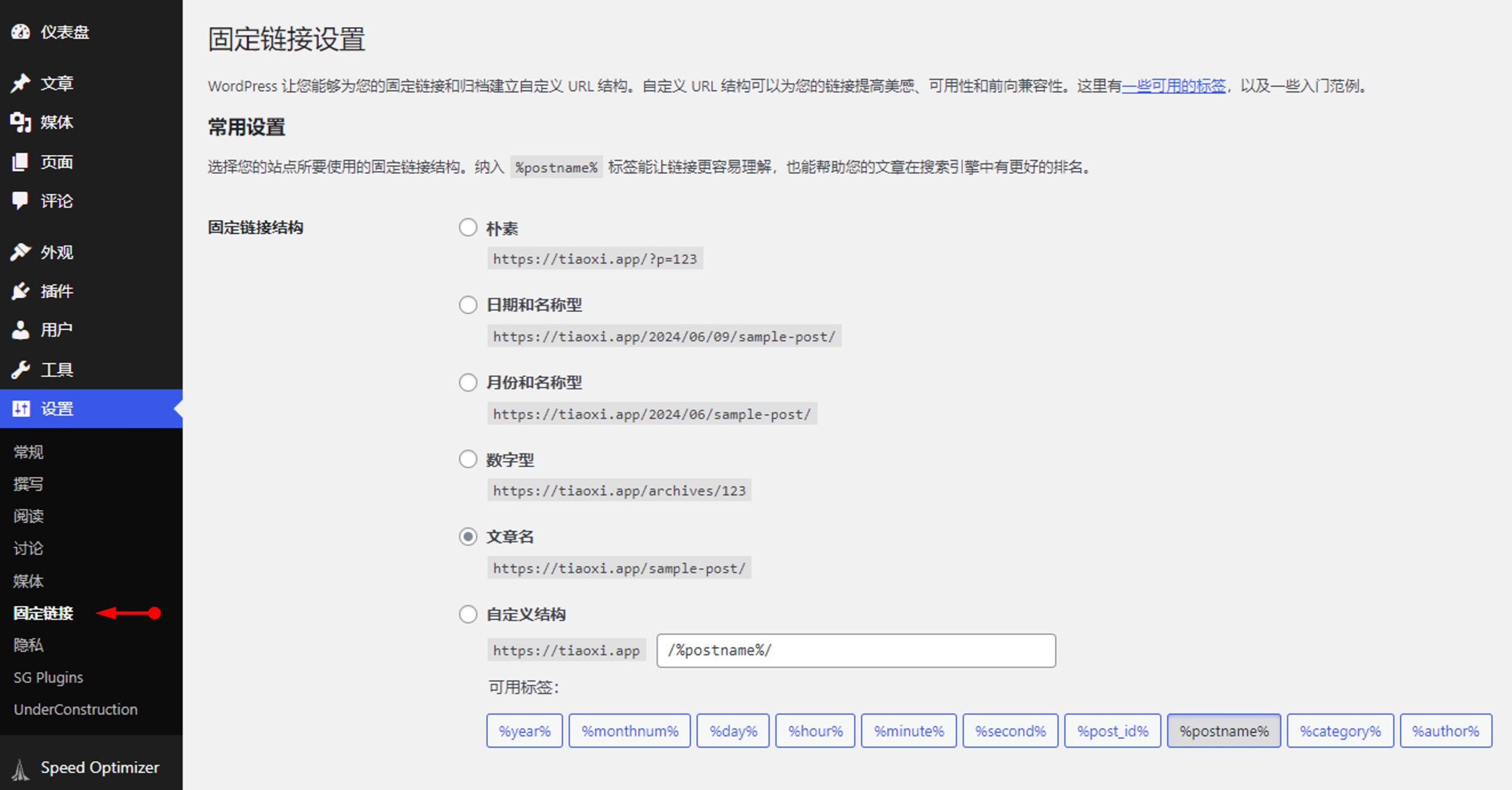 ——固定链接选项