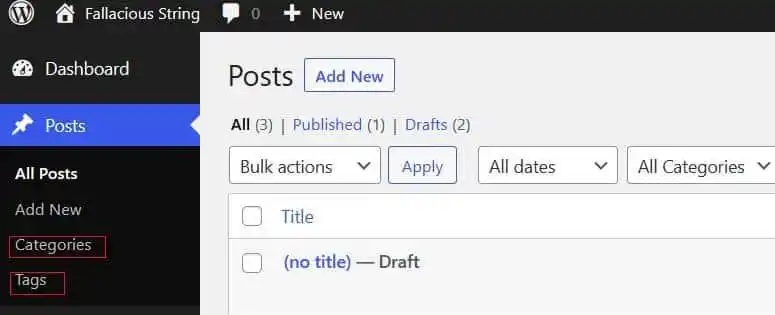 在默认设置下,WordPress只包含文章的分类,主要有两种:Categories(分类)和Tags(标签)。虽然这两者都可以用于网站的内容分类,但通常我们更倾向于使用Categories,而将Tags视为更为细致的关键词或长尾词,这样有助于优化谷歌SEO。