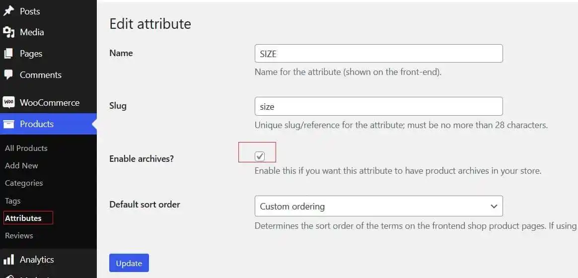 Attributes是WooCommerce独有的功能,用于细化产品特征,例如功率、重量、尺寸等。一旦启用其归档功能,其效果与Categories和Tags类似。