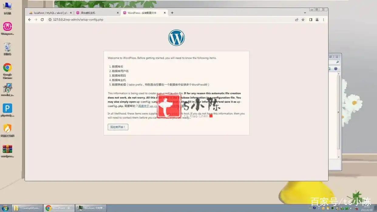 首先,确保完成之前的所有步骤后,您可以在浏览器中输入127.0.0.2,以顺利进入WordPress的安装界面,见下图:
