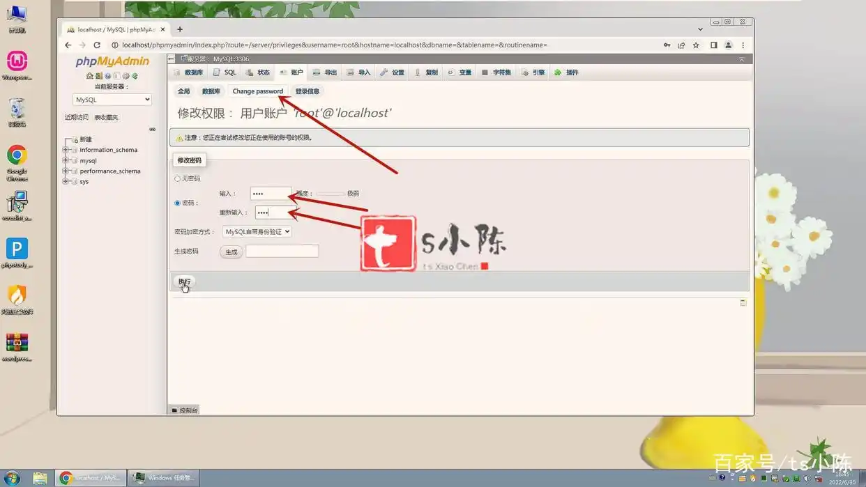 首先,点击上方的“更改密码”选项,在密码框中输入root,然后选择执行操作。