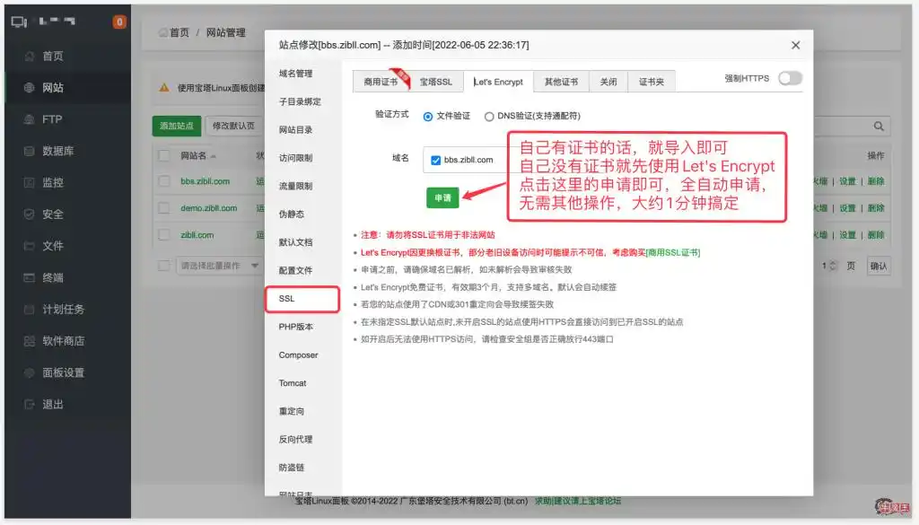 特别需要注意的是,使用Let’s Encrypt的证书有效期仅为一个月。为了确保网站的安全性和稳定性,建议后期更换为其它长期有效的证书。如果不想付费,阿里云和腾讯云均提供一年有效期的免费证书,完全足够使用!