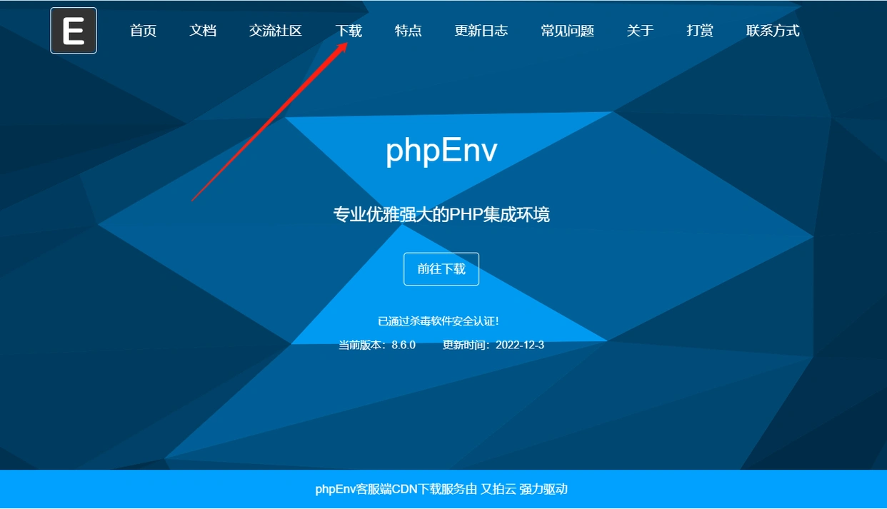 访问phpEvn的官方网站,点击“下载”按钮以进入下载页面。如果您不知道官网地址,可以自行进行搜索。
