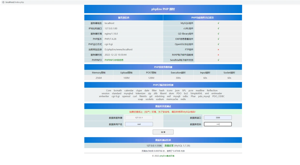 在浏览器中输入localhost并按回车,若出现以下界面,则说明phpEvn集成环境安装成功。