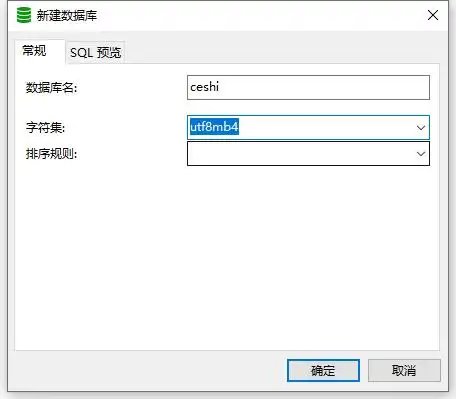 在安装之前,请先打开数据库,创建名称为“ceshi”的新数据库,如下图所示。