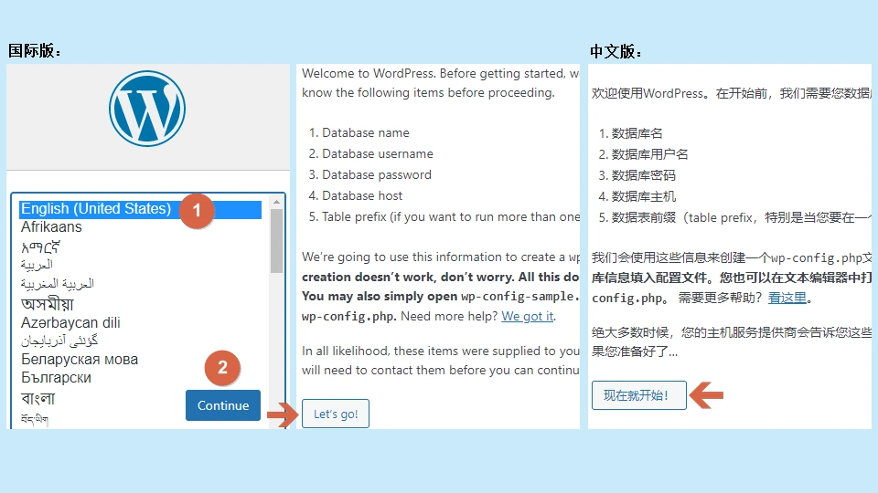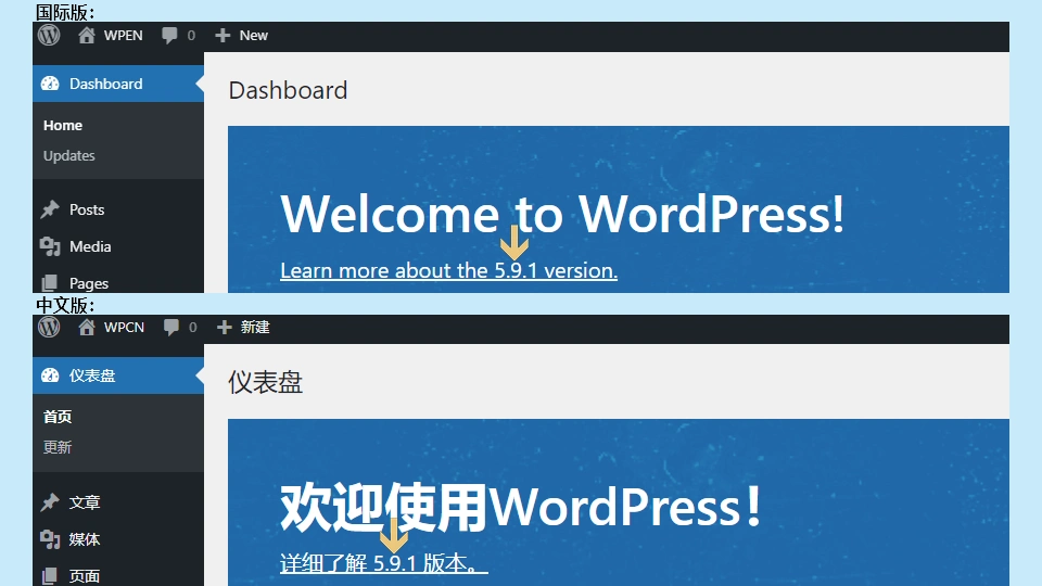 截至我撰写本文时,WordPress的最新版本为5.9.1,分别在英文和中文官网上可获取。为了便于展示中英文的安装过程,我下载了两个不同的安装包。