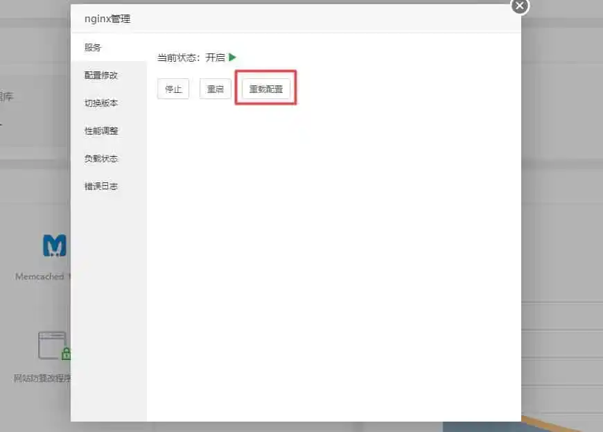 打开Nginx管理界面,重载配置,并清理缓存,最后也要清理浏览器的缓存,这样就能查看到加速效果了。
